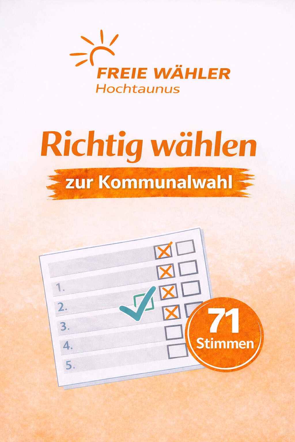 Die Kommunalwahl in Hessen ist bewusst als Persönlichkeitswahl ausgestaltet. Sie gibt den Bürgern die Möglichkeit, sehr differenziert zu entscheiden, wem sie Verantwortung für die kommunalen Aufgaben übertragen möchten. Gerade bei der Wahl des Kreistags im Hochtaunuskreis gilt daher: 71 Stimmen bieten 71 Chancen, die Zukunft der eigenen Region aktiv mitzugestalten.